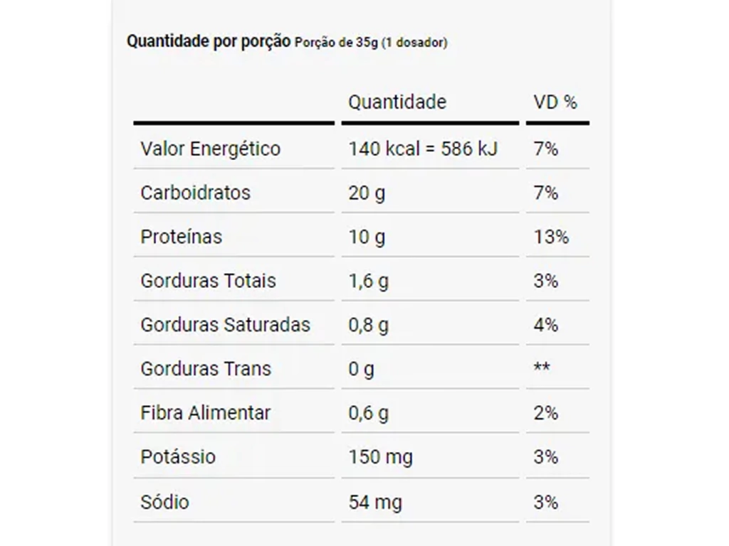 - Proporção 4:1 de carboidratos e proteínas, ideal para recuperação pós-treino