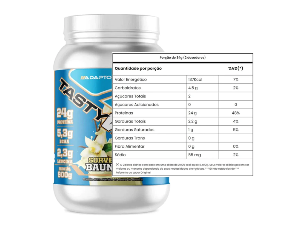 O Tasty Whey Baunilha 900g - Adaptogen é a escolha ideal para quem busca um sabor atemporal, elegante e versátil, aliado ao poder da proteína de alto valor biológico e aos benefícios funcionais dos adaptógenos. Perfeito para quem deseja praticidade, desempenho e bem-estar em uma única dose, é um verdadeiro aliado para quem leva uma vida ativa e equilibrada.