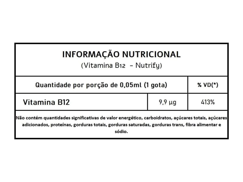 O VitB12 Líquida 20ml da Nutrify é um suplemento em gotas formulado com cianocobalamina (vitamina B12), uma vitamina do complexo B essencial para o bom funcionamento do sistema nervoso, produção de energia, formação de glóbulos vermelhos e metabolismo de homocisteína. A apresentação líquida garante rápida absorção, especialmente pela via sublingual, sendo ideal para vegetarianos, veganos e pessoas com dificuldade de absorção dessa vitamina.
