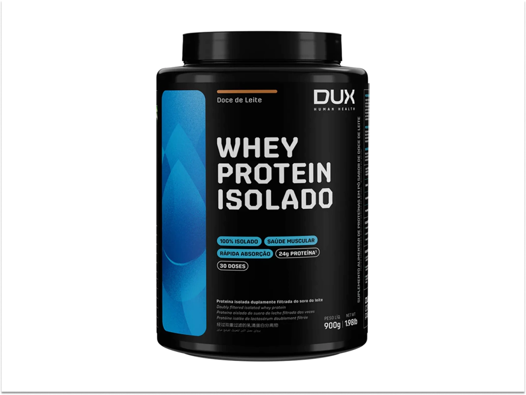 O Whey Protein Isolado Doce de Leite 900g – Dux é um Whey Protein Isolado (WPI) de alta pureza com sabor irresistível de doce de leite, desenvolvido para quem busca proteína de elite, recuperação acelerada e o sabor cremoso do tradicional dulce de leche argentino. Com 27g de proteína por dose (30g de pó), este suplemento é ideal para o pós-treino, café da manhã ou como reforço proteico funcional, oferecendo ganho de massa magra, saciedade prolongada e zero lactose — tudo em um pote de 900g com sabor que transporta para a infância.