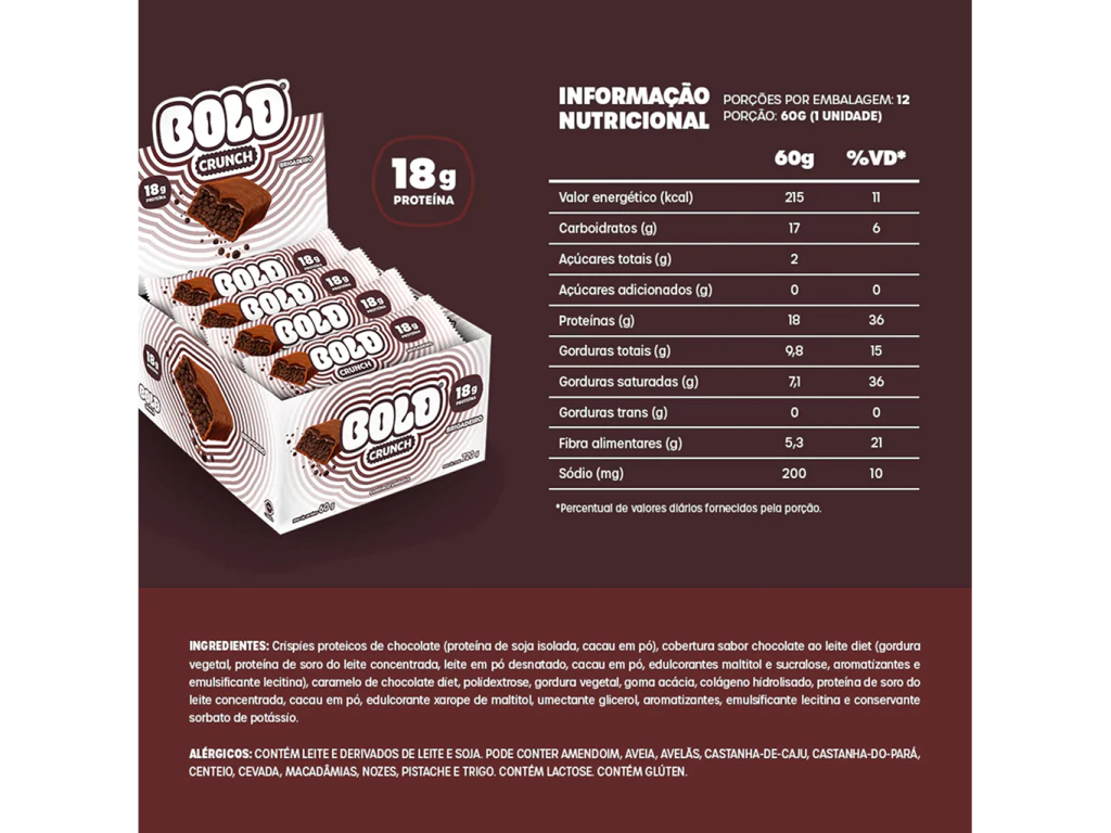 O Bold Crunch Brigadeiro 60g – Bold é muito mais que um doce: é uma revolução no mundo dos snacks funcionais. Com o sabor marcante do brigadeiro brasileiro, aliado à crocância e ao recheio cremoso, combina nostalgia, saciedade e alto valor proteico — perfeito para quem quer se deliciar sem sair da dieta. Ideal para quem ama sabor, mas vive com foco em resultados.