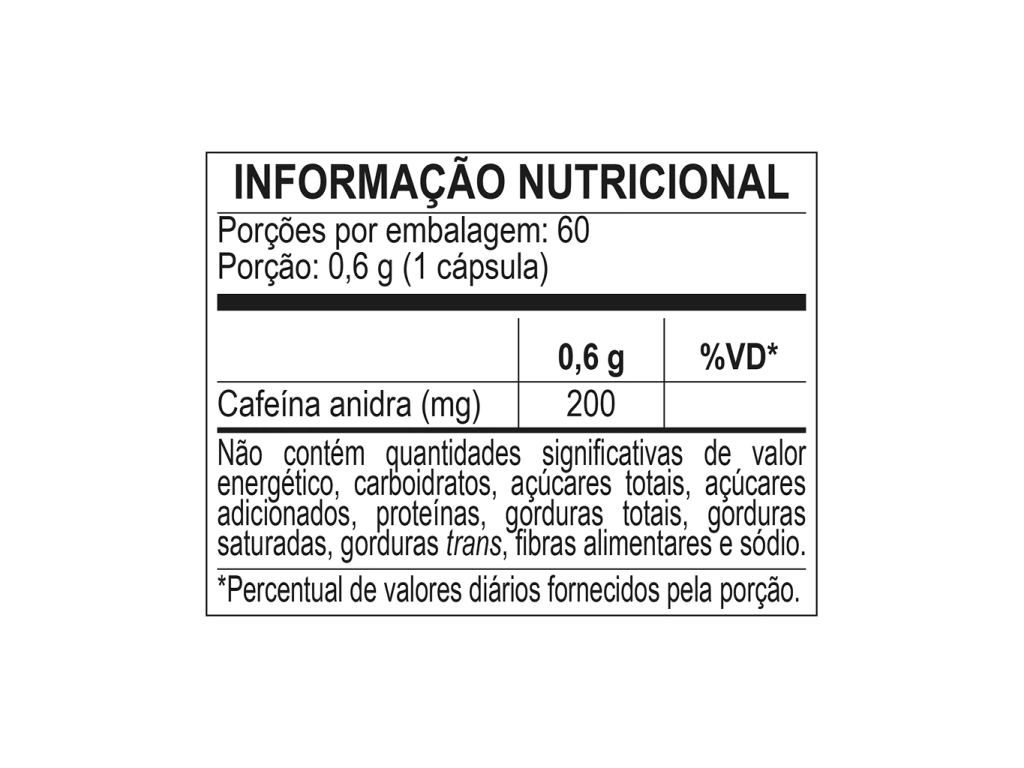 Cafeína 200mg 60Caps da Body Action é um suplemento estimulante em cápsulas, formulado para aumentar o estado de alerta, melhorar o foco mental, reduzir a sensação de fadiga e potencializar o desempenho físico durante treinos e atividades de alta intensidade. Cada cápsula contém 200mg de cafeína anidra — dosagem eficaz e controlada, equivalente a aproximadamente 2 xícaras de café expresso —, ideal para ser consumida antes do treino, durante estudos ou em momentos que exigem concentração máxima. Prático, seguro e de rápida absorção, é o aliado perfeito para quem busca um impulso energético sem açúcares, corantes ou aditivos desnecessários.