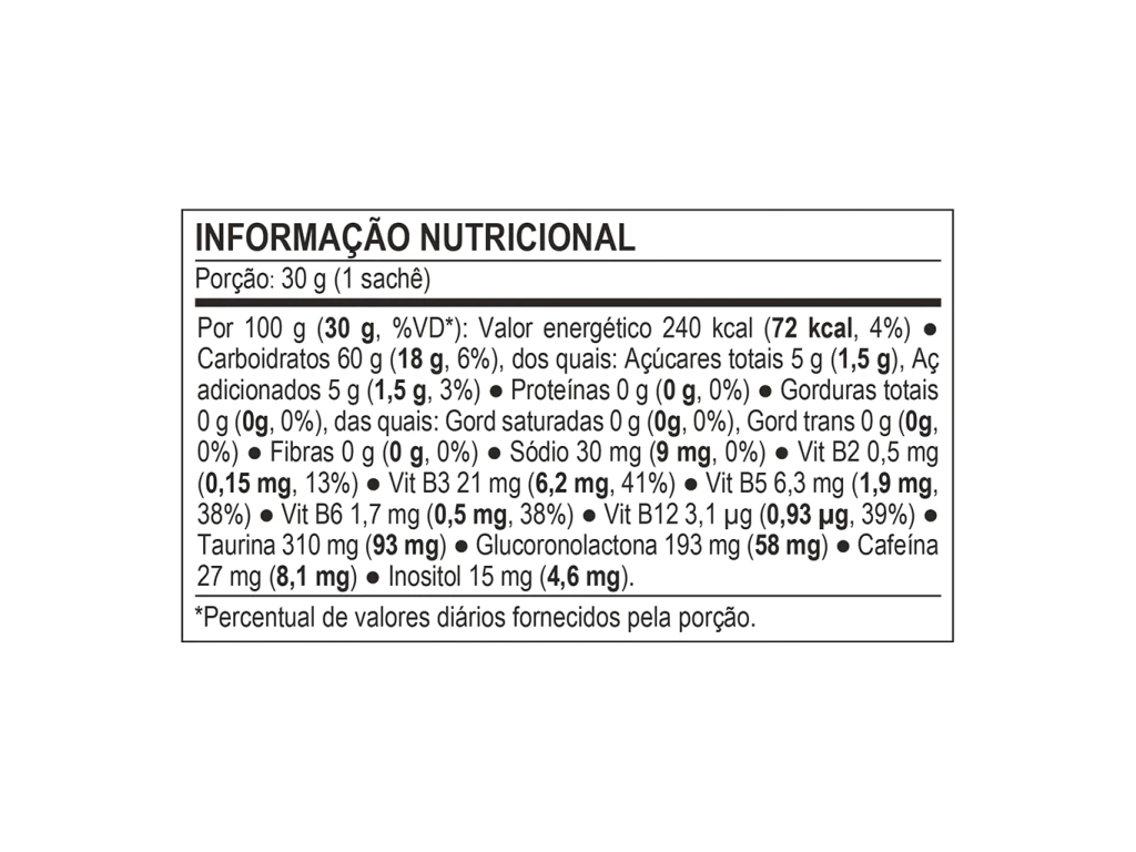 Sua composição combina maltodextrina e frutose, carboidratos de diferentes índices glicêmicos, garantindo liberação rápida e sustentada de energia, evitando picos de insulina e a fadiga precoce. A L-carnitina auxilia no transporte de ácidos graxos para dentro das mitocôndrias, favorecendo a produção de energia a partir da gordura corporal — ideal para sessões longas e de intensidade moderada a alta. Além disso, contém eletrólitos como sódio e potássio, que ajudam a manter o equilíbrio hídrico e prevenir cãibras musculares.