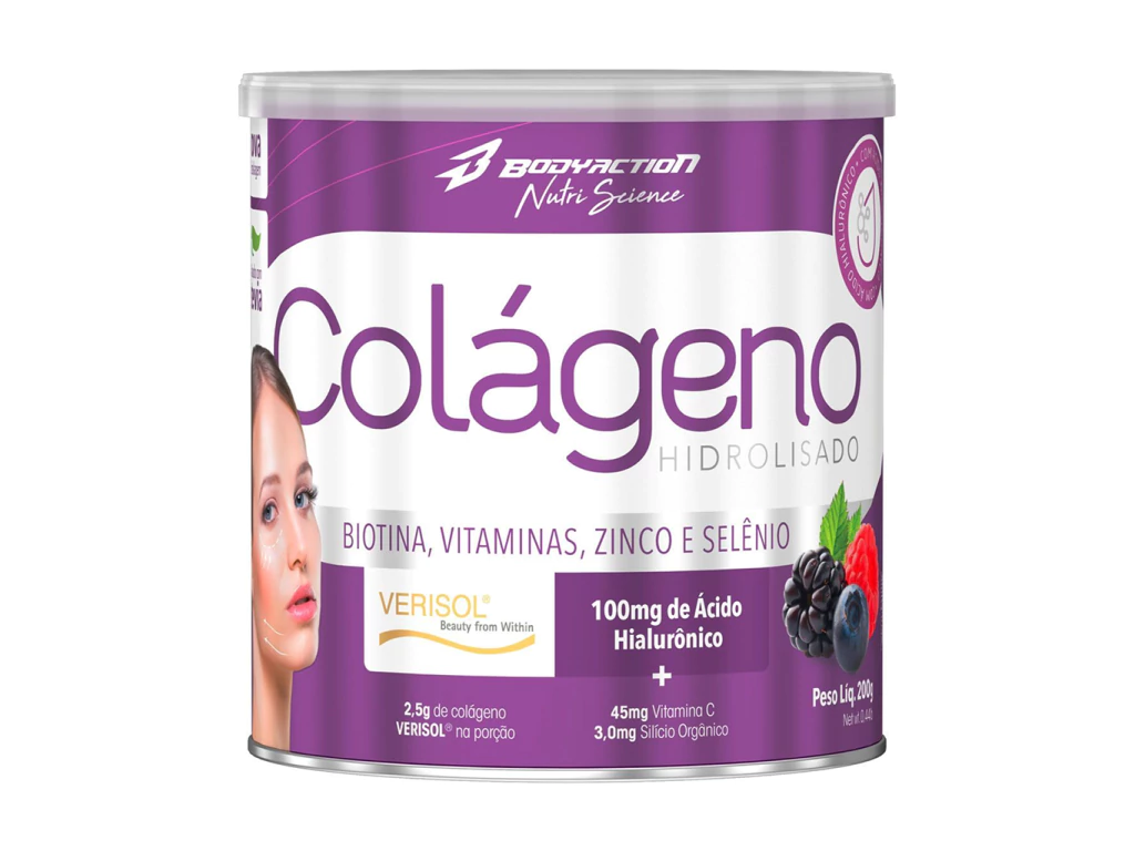 Colágeno Verisol com Ácido Hialurônico 200g Frutas Body é um suplemento em pó formulado para promover a saúde da pele, cabelos, unhas e articulações, com ação antienvelhecimento e hidratante comprovada. Sua fórmula premium combina Verisol® — peptídeos bioativos de colágeno tipo I, clinicamente estudados para estimular a produção de colágeno no corpo — e ácido hialurônico, que retém água nos tecidos, melhorando a elasticidade, hidratação e firmeza da pele. Com sabor refrescante de frutas variadas, é livre de açúcares adicionados e de fácil absorção, ideal para uso diário pela manhã ou à noite, misturado em água, sucos ou vitaminas.