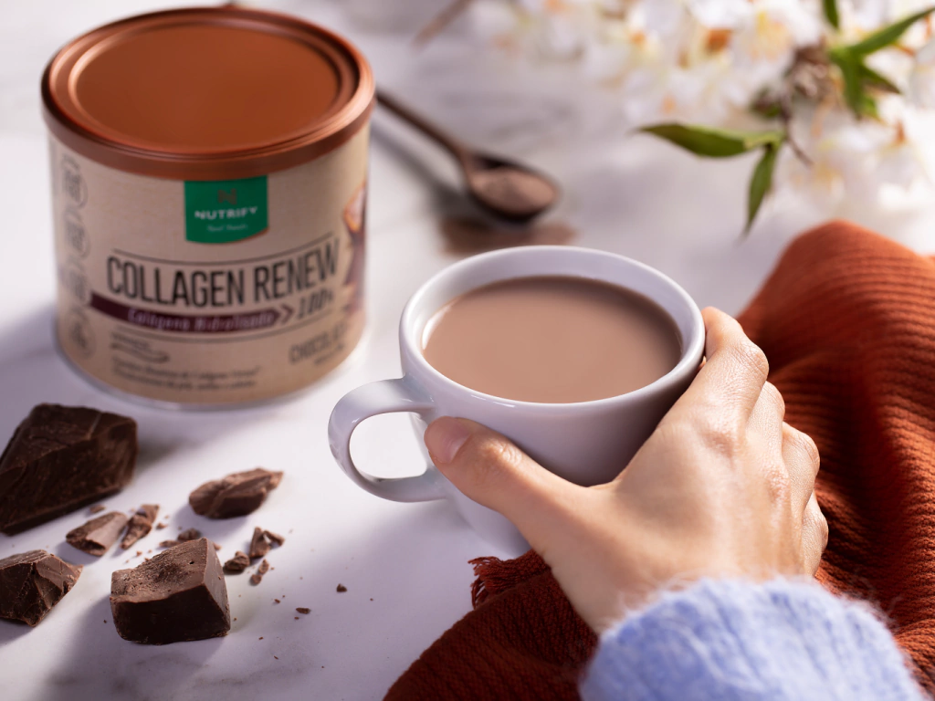 O Collagen Renew Jabuticaba 300g - Nutrify é um suplemento formulado para promover a saúde das articulações, pele, unhas e cabelos. Sua composição inclui peptídeos bioativos de colágeno e ácido hialurônico, proporcionando suporte à mobilidade articular e elasticidade da pele.
