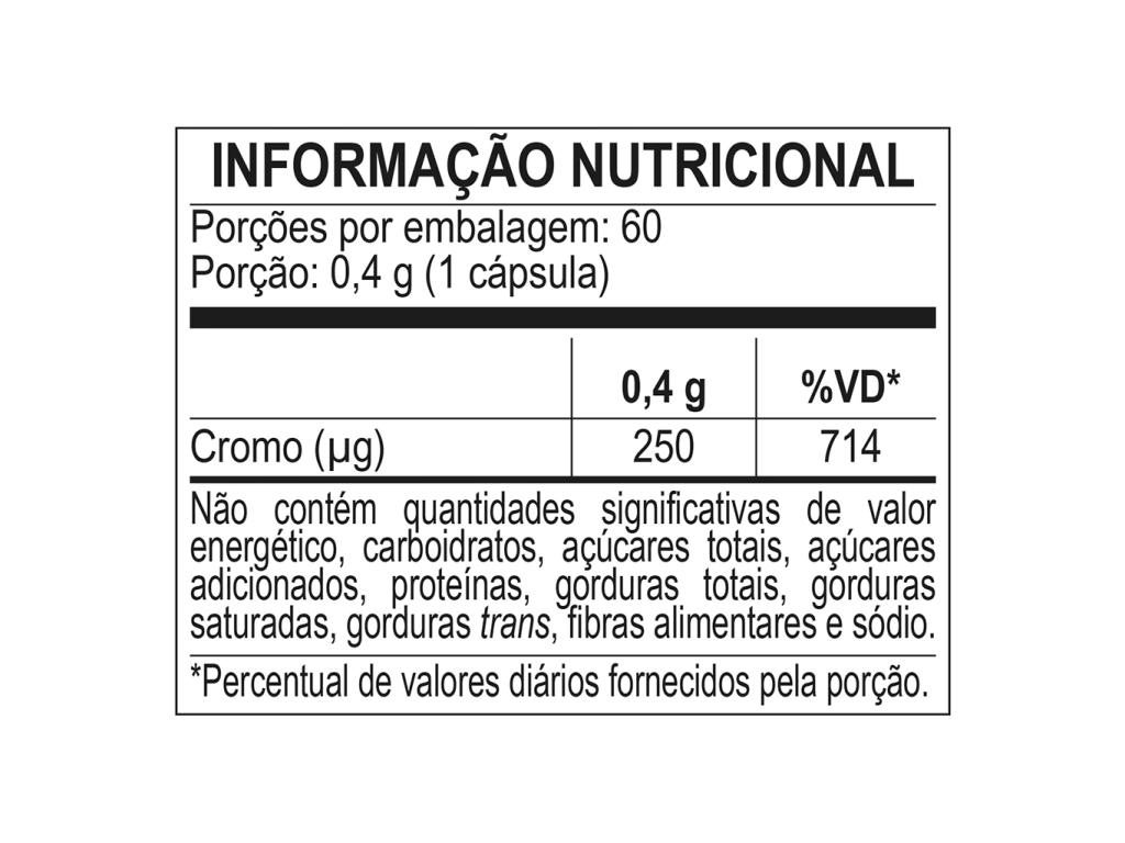 - Auxilia no metabolismo de carboidratos, proteínas e gorduras- Contribui para o controle dos níveis de glicose no sangue- Ajuda a reduzir a compulsão por doces- Suporte para dietas de emagrecimento e controle de peso