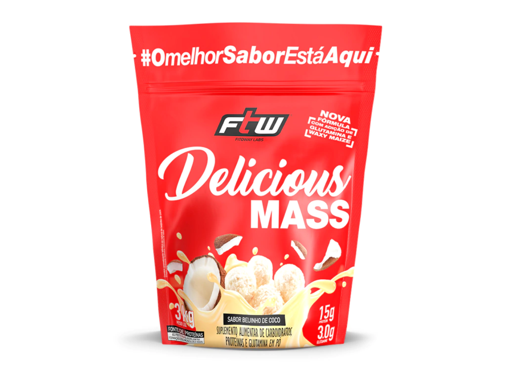 O Delicious Mass 3kg Beijinho de Coco - FTW é ideal para quem deseja aumentar a ingestão calórica diária e potencializar os ganhos musculares, combinando nutrição e um sabor irresistível.