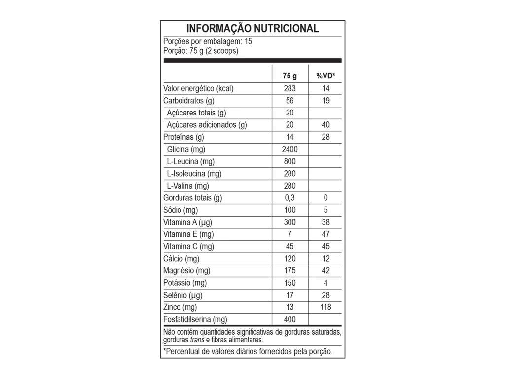 Diluir 55g (5 colheres de sopa) em 300ml de água e consumir antes, durante ou após o treino, conforme a necessidade e orientação profissional.