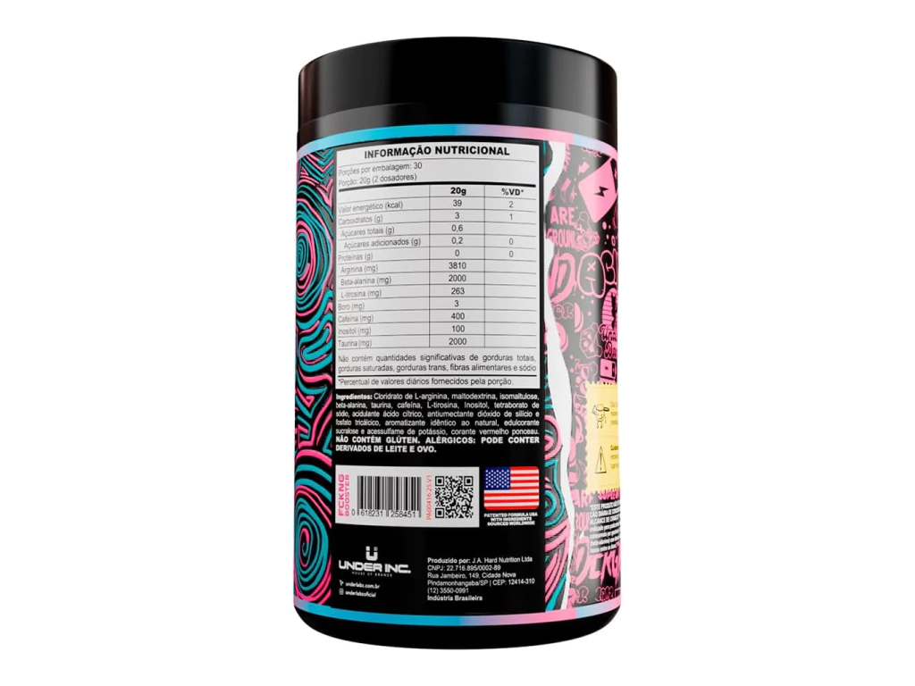 O FCKNG Booster 600g Sabor Pink Limonade da Under Labz é um pré-treino de alta performance formulado para atletas e praticantes de atividade física que buscam explosão de energia, foco mental absoluto, resistência extrema e bomba muscular intensa durante os treinos. Com sabor refrescante e cítrico de Pink Limonade (limonada rosa com toques de frutas vermelhas), sua fórmula agressiva e clinicamente dosada combina ingredientes como citrulina malato, beta-alanina, cafeína anidra, noopept, alfa-GPC, dinhidromiricetina e extrato de raiz de gengibre — todos sinérgicos para maximizar o desempenho físico, retardar a fadiga, aumentar o fluxo sanguíneo e elevar a cognição. Produto voltado para usuários avançados, exige uso responsável devido ao seu alto teor de estimulantes e compostos nootrópicos potentes.