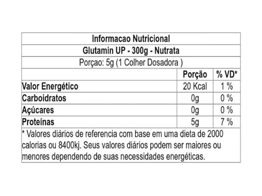 O Glutamin Up 300g da Nutrata é um suplemento de glutamina enriquecido com taurina e eletrólitos, formulado para acelerar a recuperação muscular, fortalecer o sistema imunológico e manter o equilíbrio hídrico durante e após exercícios intensos. Sua fórmula \"Up\" combina 5g de glutamina pura por porção com componentes que potencializam a absorção e a eficácia, sendo ideal para atletas que buscam reduzir a fadiga e preservar massa muscular em treinos de alta demanda.