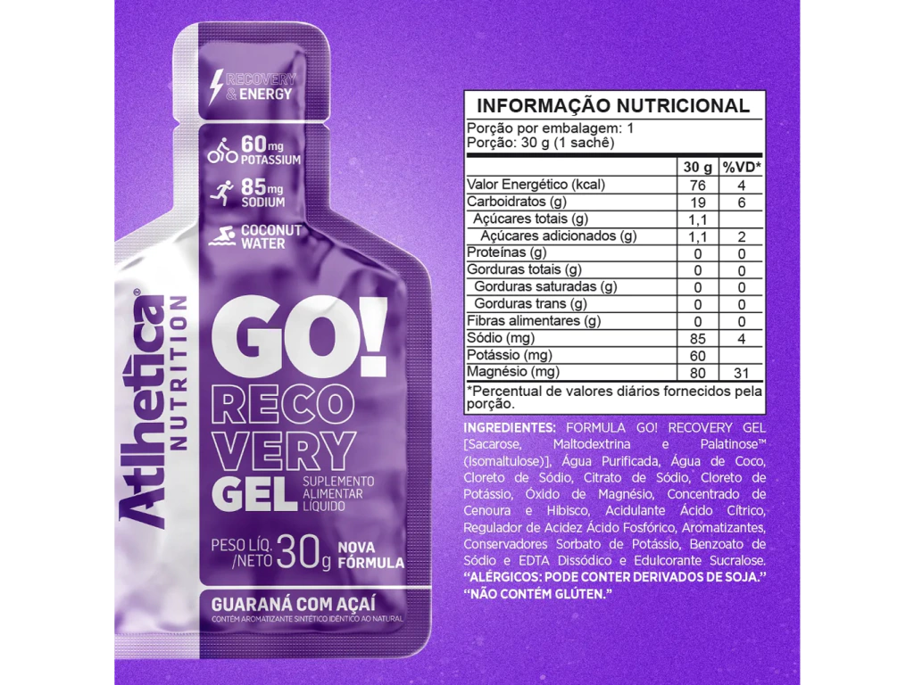 O GO! Recovery Gel Guaraná com Açaí é um suplemento energético e reidratante em gel, desenvolvido para promover recuperação muscular rápida e eficaz após treinos intensos ou provas de resistência. Com carboidratos de diferentes velocidades de absorção, além de eletrólitos e aminoácidos essenciais, ele contribui para o reabastecimento de energia, hidratação e suporte à regeneração muscular. O sabor de guaraná com açaí confere uma experiência refrescante e típica brasileira, ideal para repor o que o corpo precisa no momento certo.