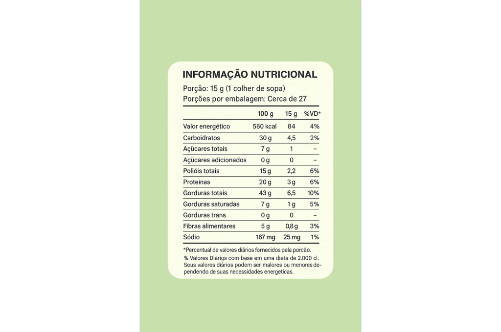 Consumir 2 colheres de sopa (40g) ao dia, puro ou acompanhado de pães, torradas, frutas ou conforme orientação de nutricionista ou médico.