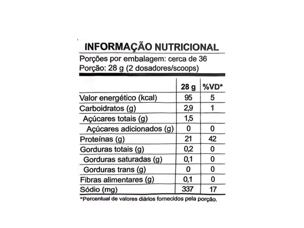 - Embalagem com 1kg em pó (aproximadamente 33 doses de 30g)