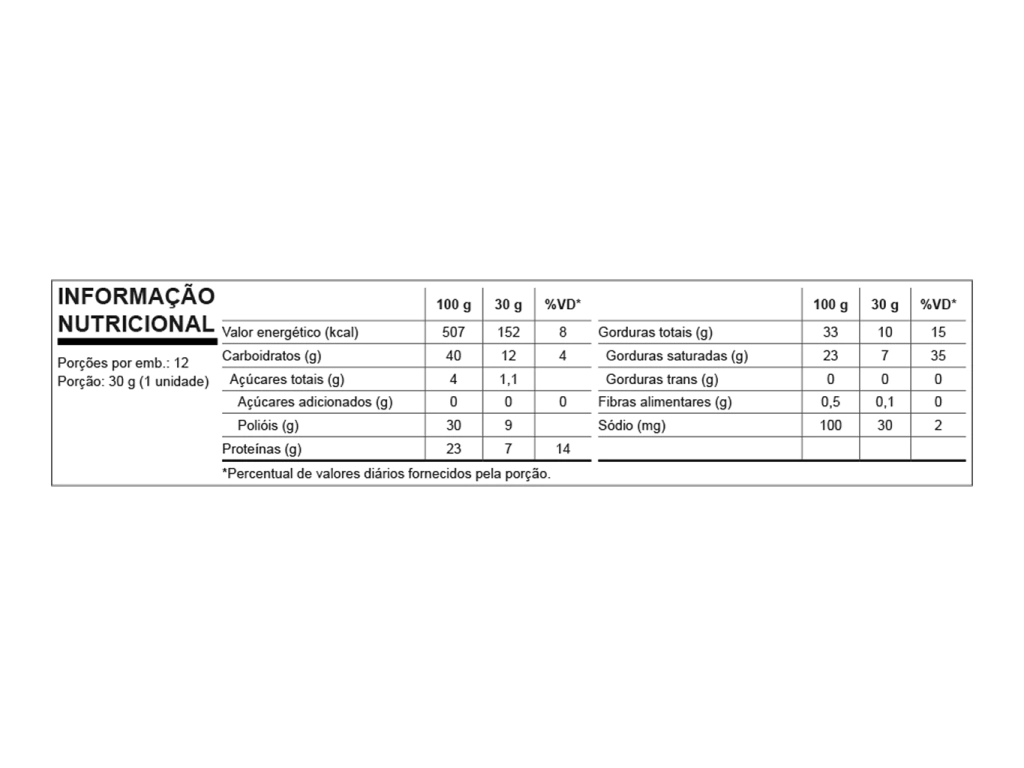 Alérgicos: Contém derivados do leite, trigo e soja. Pode conter traços de amendoim, castanhas e ovos.