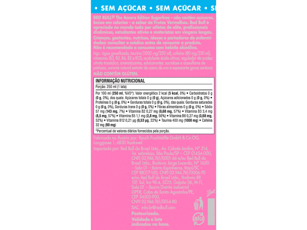 Desenvolvido para aumentar o estado de alerta, melhorar o foco mental e combater a fadiga, o Red Bull Amora Edition é perfeito para momentos que exigem concentração, como estudos, trabalho, direção ou antes de atividades físicas. Apesar do sabor mais refinado, mantém a icônica fórmula energética da marca, com cafeína, taurina e vitaminas do complexo B, essenciais para o desempenho físico e cognitivo.