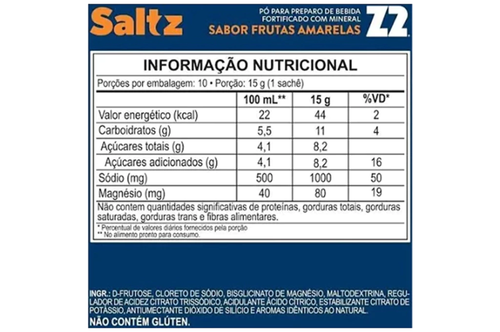 Diferente de bebidas isotônicas convencionais, o Saltz 1000 Z2 possui baixo teor de açúcares e carboidratos, sendo uma opção mais leve e inteligente para a hidratação. Sua fórmula é rica em sódio, potássio, magnésio, cálcio e zinco — minerais essenciais para o equilíbrio hídrico, prevenção de cãibras, funcionamento muscular e apoio ao sistema imunológico.