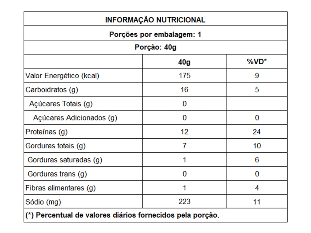 O Snack Protein Presunto 40g da New Millen é a combinação perfeita entre praticidade, sabor e nutrição. Com alto teor proteico e baixas calorias, é uma ótima opção para quem busca manter a massa muscular, controlar a fome entre refeições e seguir uma alimentação funcional — tudo com o sabor reconfortante de presunto. Ideal para quem não tem tempo a perder, mas não abre mão de uma escolha saudável.