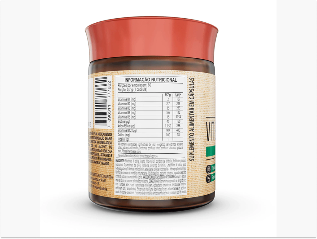 O Vit B Complex 60 cápsulas – Nutrify é o combustível invisível do seu dia. Com todas as vitaminas B essenciais em uma fórmula balanceada e de alta absorção, apoia sua energia, mente e beleza interna — tudo em uma cápsula prática, livre de glúten e feita para quem vive com intensidade.
